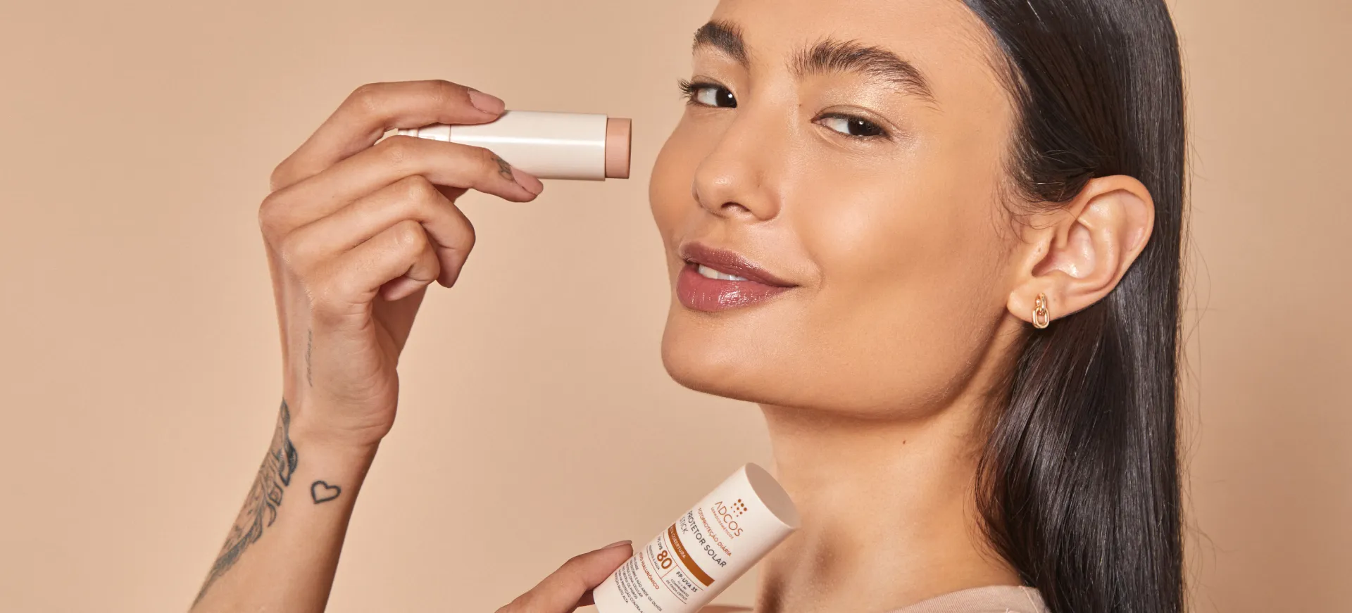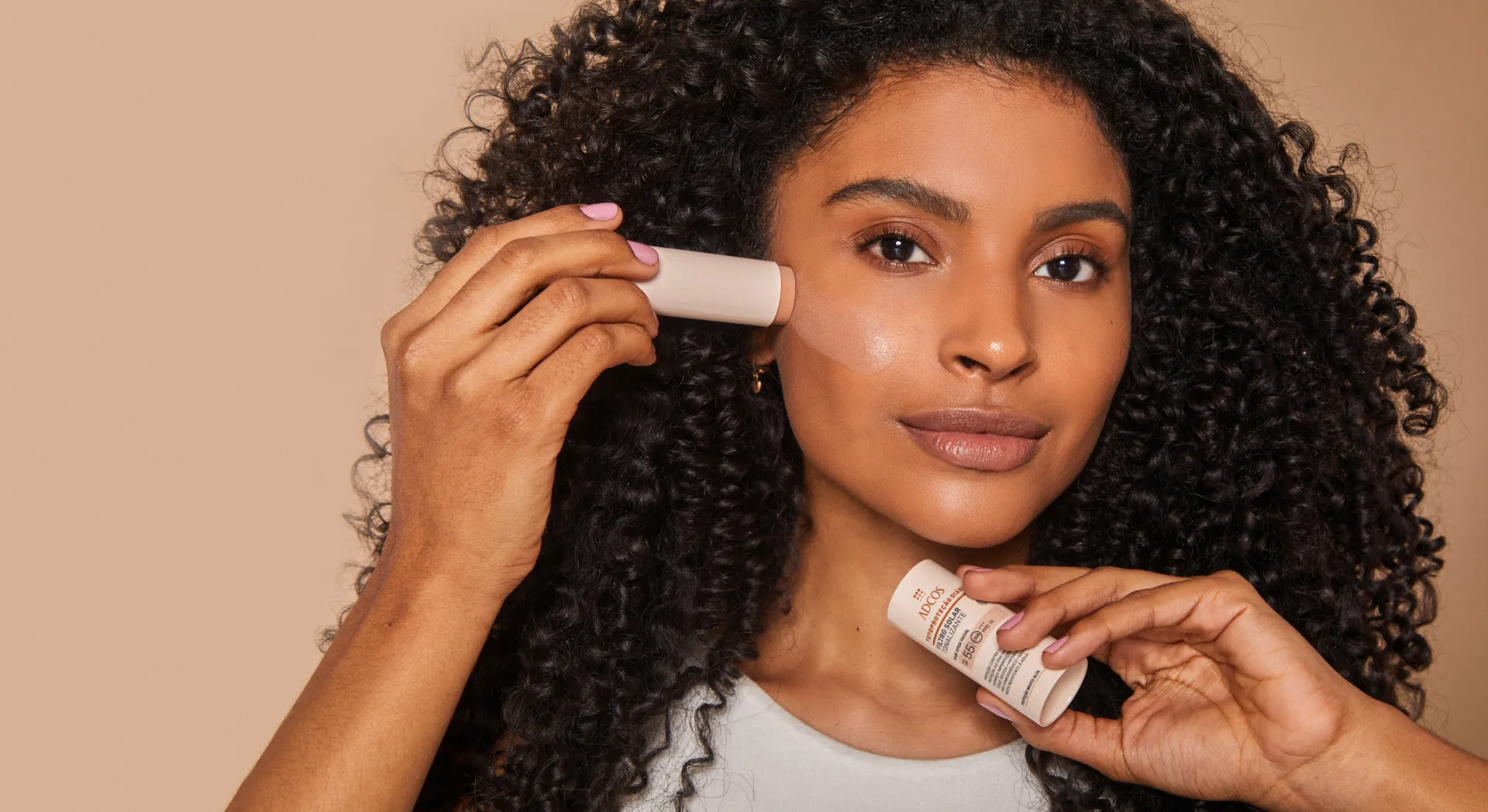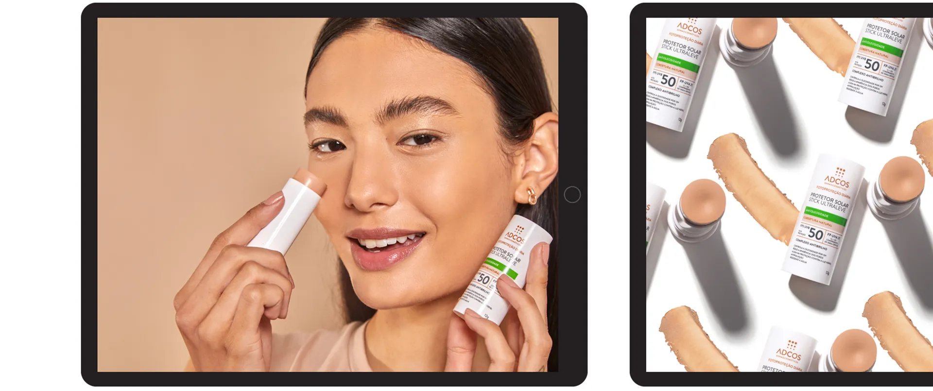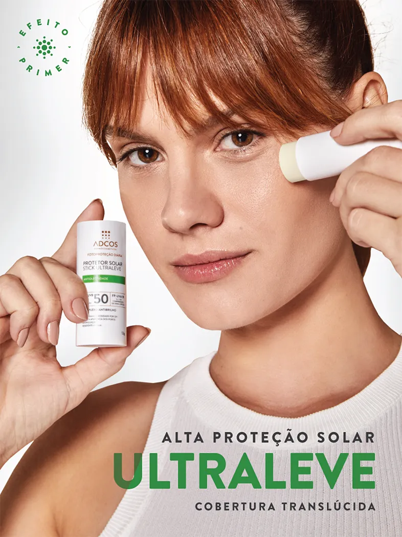 Adcos Sticks FPS55 e FPS80. Máxima proteção solar com alta cobertura no tom da sua pele.