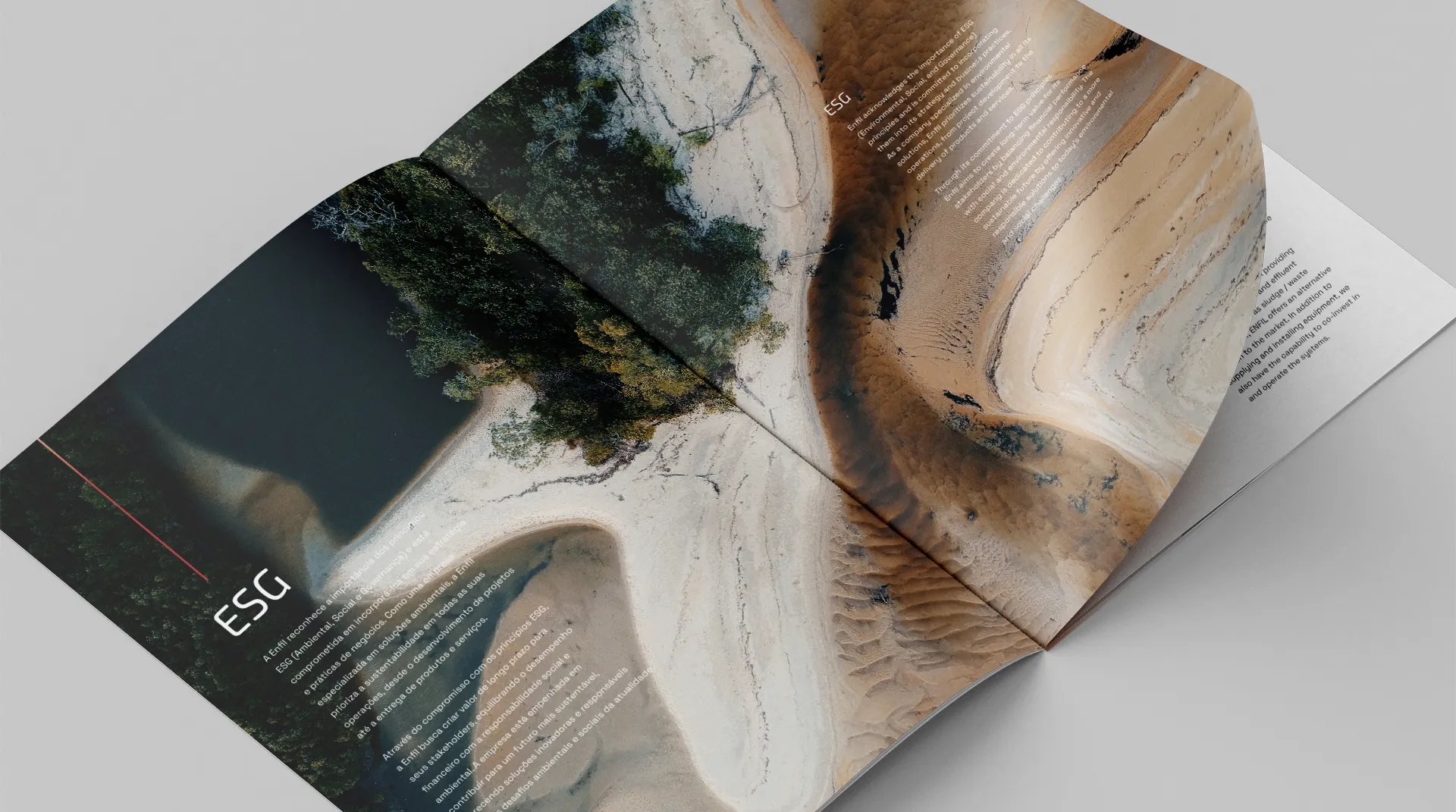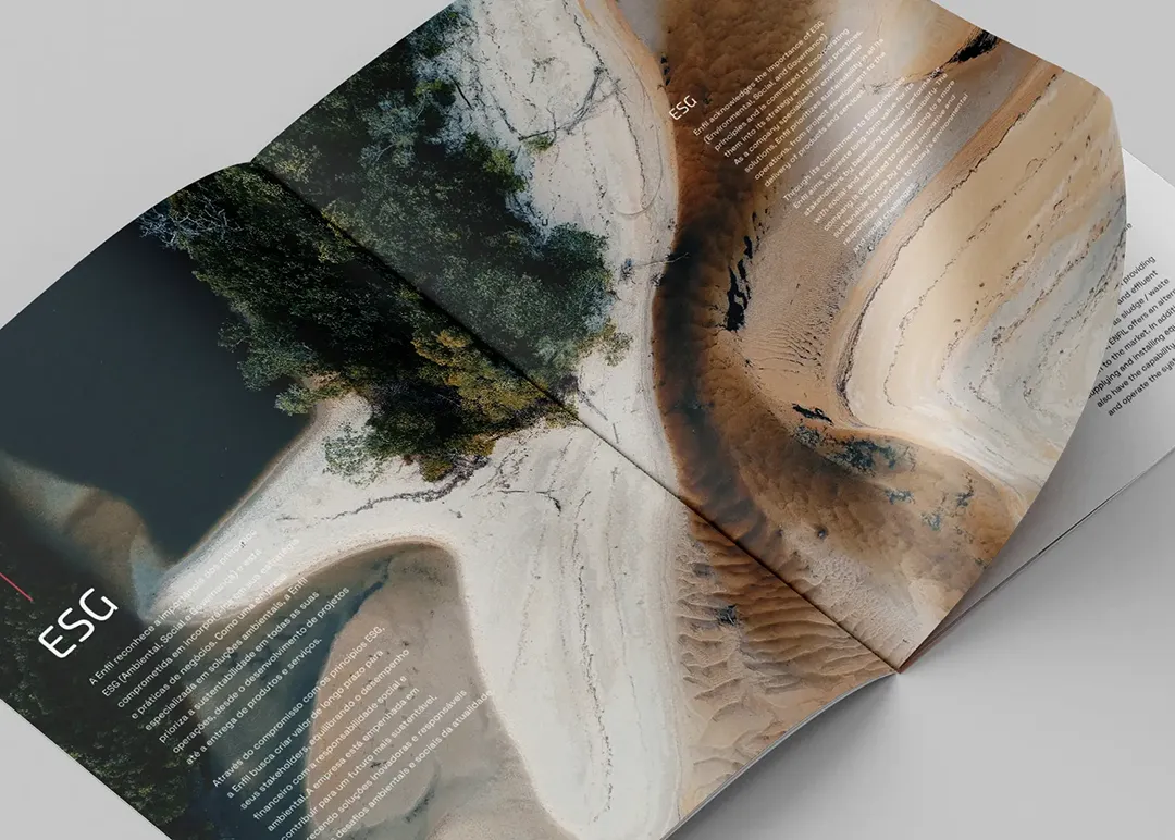 No coração desta transformação está o novo logotipo, ilustrado pela gota de água e círculos concêntricos, que simbolizam o amplo impacto das soluções da Enfil. O 'E' em destaque no logo remete tanto a 'environment' (meio ambiente) quanto à própria Enfil, reforçando seu compromisso com a sustentabilidade e reafirmando sua identidade corporativa.