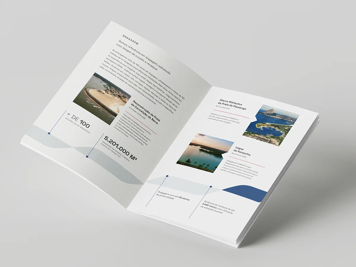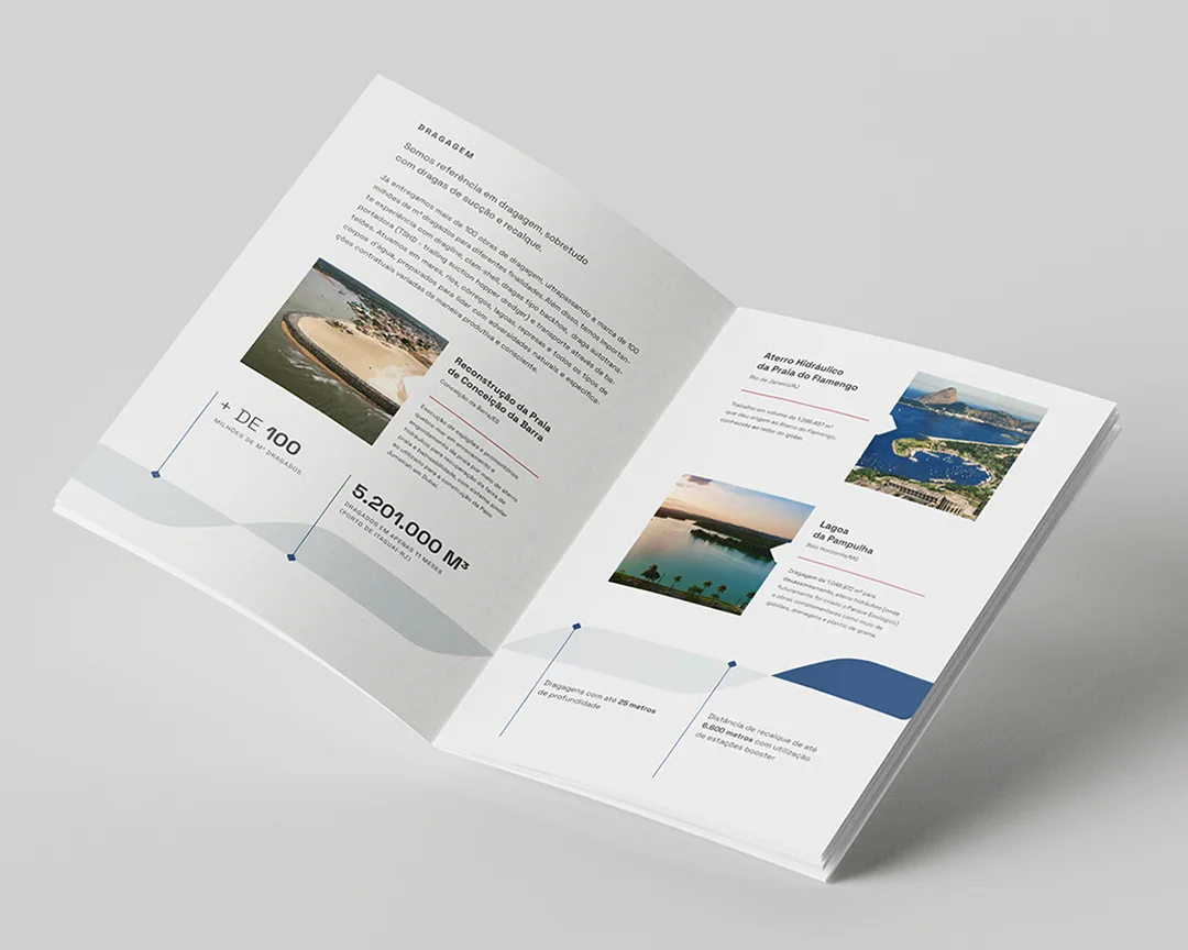 O ícone da marca é uma alusão a um desagregador de draga, equipamento-chave na atuação da empresa.
